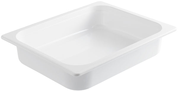 Pojemnik w standardzie GN 1/2 z melaminy. Sztaplowany i możliwy do mycia w zmywarce.