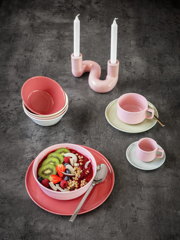 Porcelanowy spodek do espresso w kolorze białym lub innym, modnym kolorze do wyboru. Można myć w zmywarce i używać w kuchence mikrofalowej.