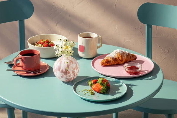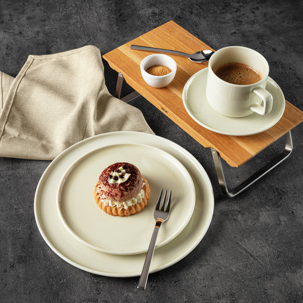 Porcelanowy spodek do kawy w kolorze białym lub innym, modnym kolorze do wyboru. Można myć w zmywarce i używać w kuchence mikrofalowej.