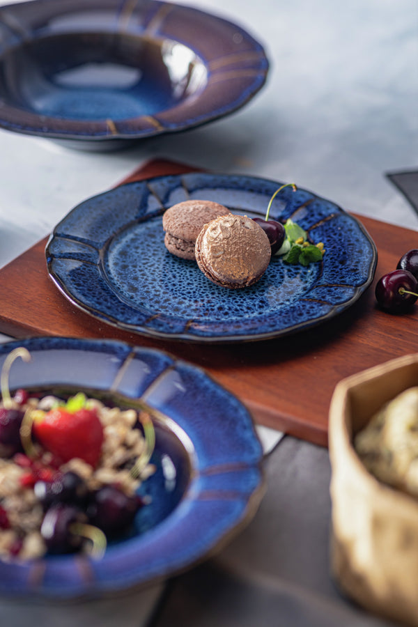 Okrągły, kolorowy talerz wykonany z porcelany. Subtelny relief i figlarne dekoracyjne krawędzie tworzą nostalgiczne akcenty. Unikalny dzięki specjalnemu szkliwieniu. Każdy element jest wyjątkowy, a naczynia mogą się różnić wybarwieniem od jasnych do ciemnych tonów. Można myć w zmywarce i używać w kuchence mikrofalowej.