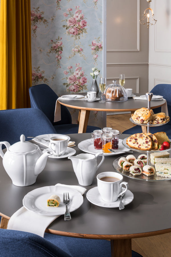Biała filiżanka do espresso urzekająca urokiem vintage. Subtelny relief i figlarne dekoracyjne krawędzie tworzą nostalgiczne akcenty. Filiżanka do espresso dostępna również w wersji sztaplowanej. Można myć w zmywarce i używać w kuchence mikrofalowej.