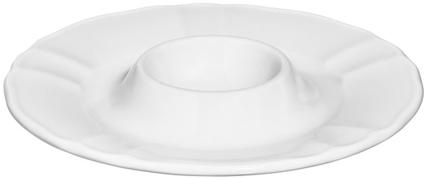 Kieliszek do jajka wykonany z białej porcelany. Subtelny relief i figlarne, dekoracyjne krawędzie tworzą nostalgiczne akcenty. Można myć w zmywarce i używać w kuchence mikrofalowej.