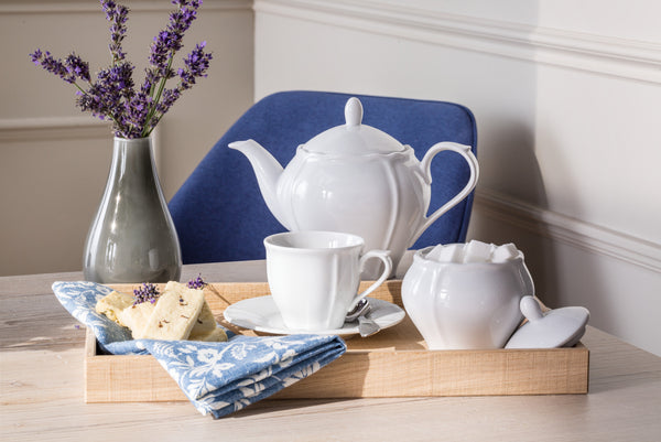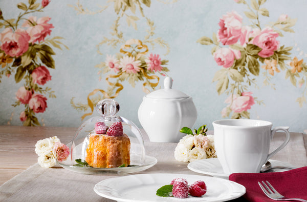 Biały spodek do kawy urzekający urokiem vintage. Subtelny relief i figlarne dekoracyjne krawędzie tworzą nostalgiczne akcenty. Można myć w zmywarce i używać w kuchence mikrofalowej.