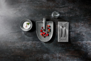 Kolorowa seria porcelany z nieregularnymi krawędziami i lekko falowaną powierzchnią. Matowe szkliwo. Bez rantu. Nadaje się do mycia w zmywarce i używania w kuchence mikrofalowej. Waga płaskiego talerza o średnicy 26 cm: 687 g.