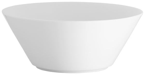 Białe, porcelanowe miseczki o stożkowym kształcie, dostępne w różnych rozmiarach. Proste i ponadczasowe wzornictwo. Można myć w zmywarce i używać w kuchence mikrofalowej.