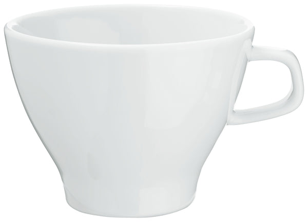 Biała porcelanowa filiżanka do cappuccino. Można myć w zmywarce i używać w kuchence mikrofalowej.