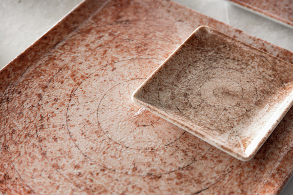 Półmisek z kolorowej porcelany z nadrukiem cyfrowym. Kwadratowy kształt bez rantu. Można myć w zmywarce i używać w kuchence mikrofalowej.