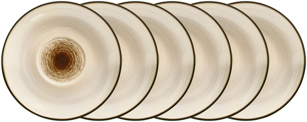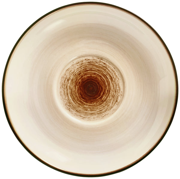 Spodek pod filiżankę do kawy wykonany z kolorowej porcelany. Ozdobiony spiralnym wzorem (ślimakiem) i kolorową obwódką. Można myć w zmywarce i używać w kuchence mikrofalowej.