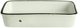 Seria porcelany w stylu retro. Z czarnym rantem i małymi odpryskami na krawędziach i zewnętrznych powierzchniach. Bez rantu. Nadaje się do mycia w zmywarce i używania w kuchence mikrofalowej. Waga płaskiego talerza o średnicy 25 cm: 614 g.
