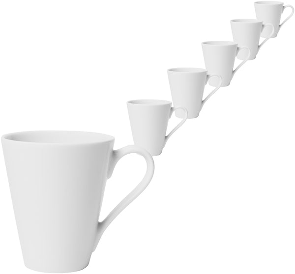 Kubek z białej porcelany. Można łączyć na wiele sposobów z kolorowymi elementami zastawy serii Mixor. Można myć w zmywarce i używać w kuchence mikrofalowej.