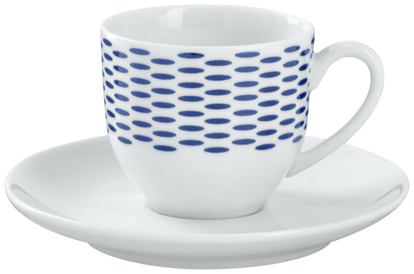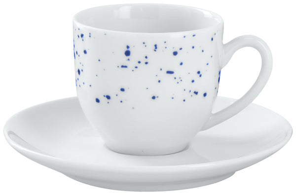 Biały porcelanowy spodek do espresso. Można łączyć na wiele sposobów z pozostałymi elementami zastawy z serii Mixor. Można myć w zmywarce i używać w kuchence mikrofalowej.