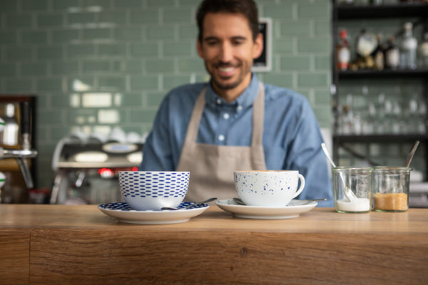 Spodek pod filiżankę do kawy wykonany z porcelany i ozdobiony wzorem. Można łączyć na wiele sposobów z kolorowymi i gładkimi elementami zastawy z serii Mixor. Można myć w zmywarce i używać w kuchence mikrofalowej.