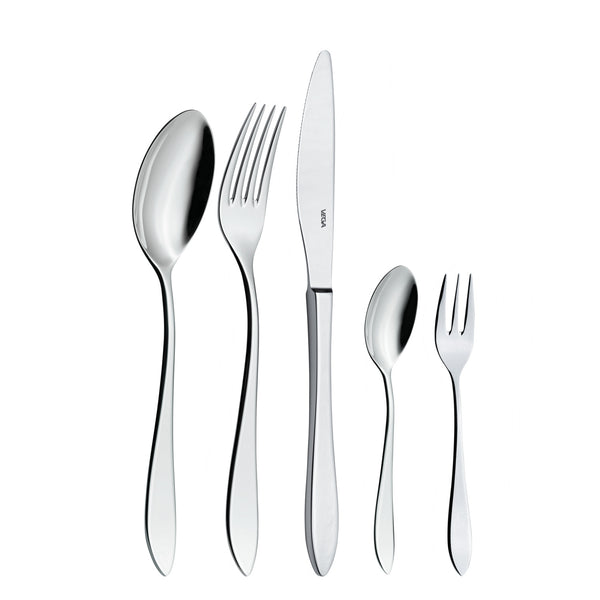 Stal nierdzewna chromoniklowa 18/10. Ponadczasowa, nowoczesna łyżka stołowa z końcówką uchwytu lekko zakrzywioną do góry. Wypolerowana na wysoki połysk. Grubość materiału 3 mm odpowiednia dla gastronomii (mierzona w najmocniejszym miejscu widelca obiadowego). Można myć w zmywarce.
