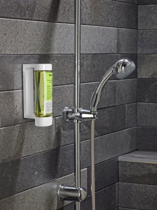 Zamykany uchwyt na plastikowe butelki z dozownikiem. Uchwyt zawsze pozostaje na ścianie, a użytkownik wymienia tylko butelki z dozownikiem. Należy pamiętać, że butelki z dozownikiem należy zamawiać oddzielnie. Instalacja jest prosta. W zestawie znajdują się instrukcje, klucz i materiały montażowe.