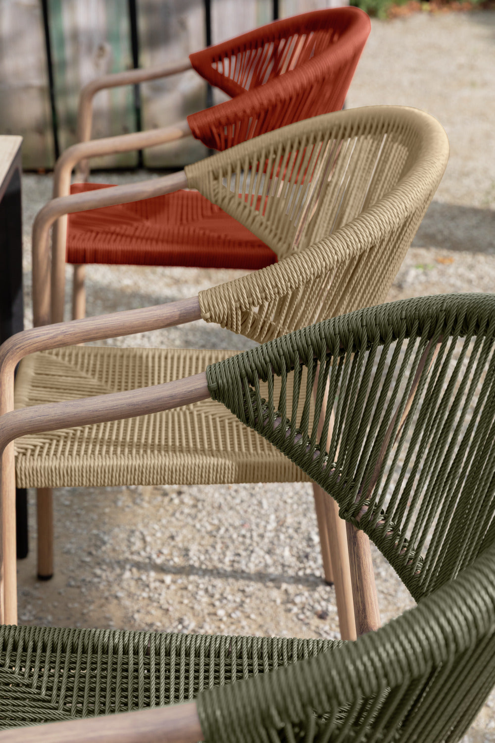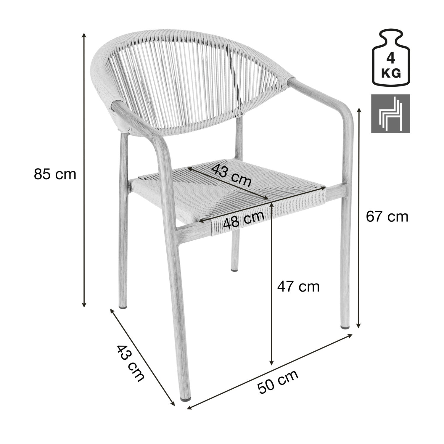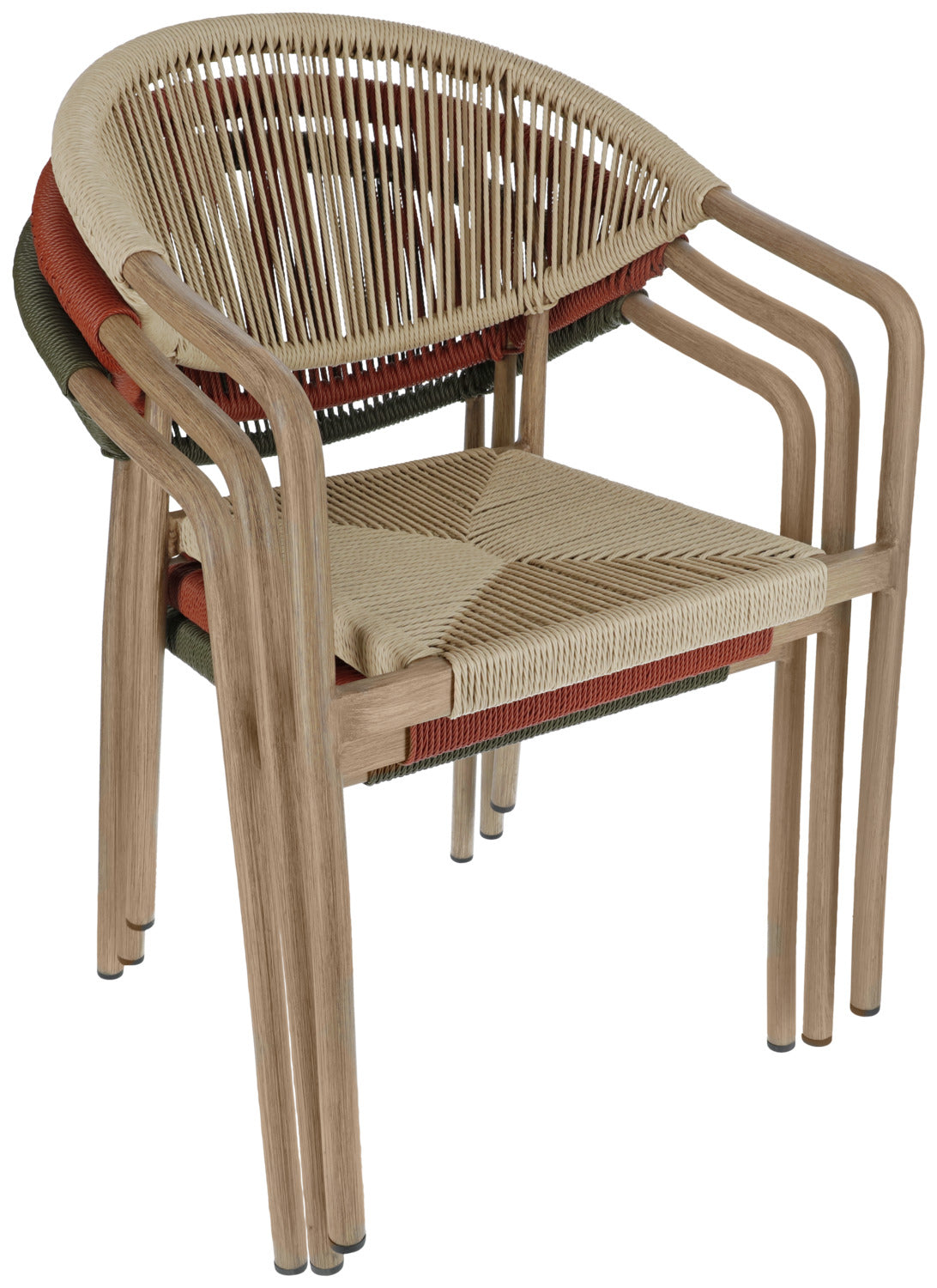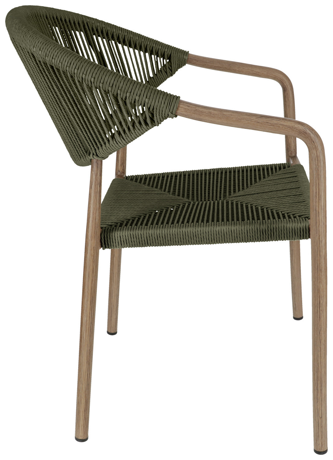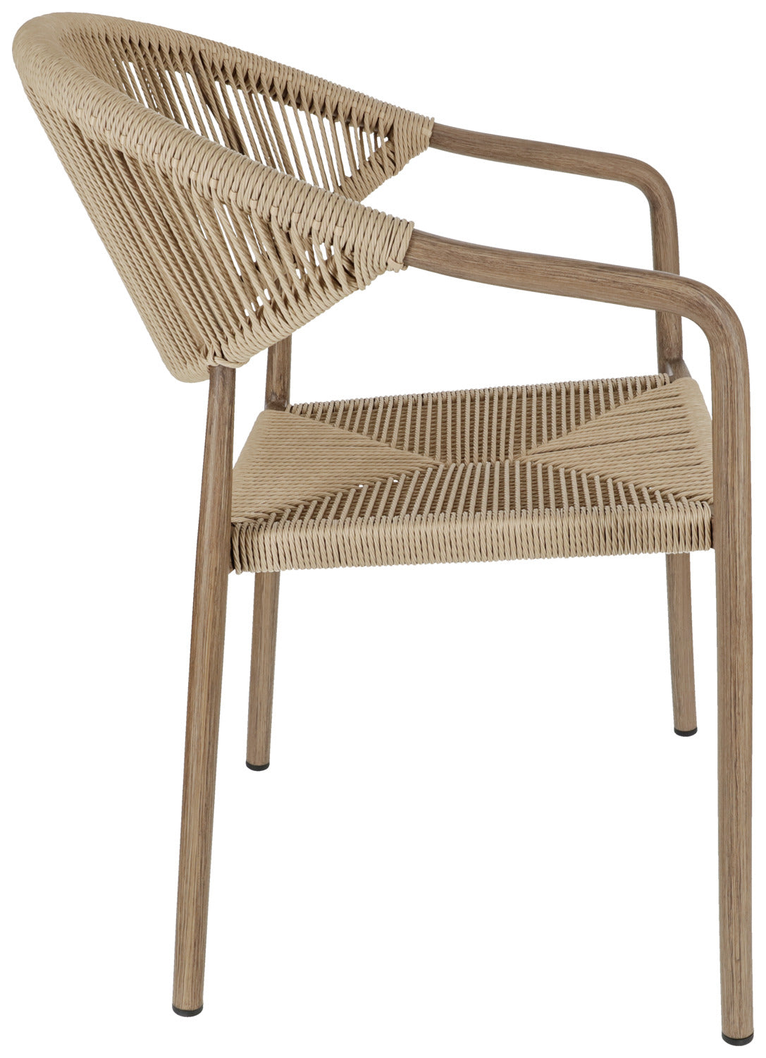 Wybierz krzesło ogrodowe, które doskonale łączy design i funkcjonalność - do Twojej restauracji, kawiarni lub hotelu. Wytrzymała aluminiowa rama o nowoczesnym wyglądzie drewna zapewnia profesjonalny wygląd, a wytrzymałe pokrycie poliestrowe Rope może wytrzymać najtrudniejsze wymagania codziennej gastronomii. Krzesło jest odporne na warunki atmosferyczne i promieniowanie UV, a także jest szybkoschnące - idealne do obszarów zewnętrznych, które są często czyszczone lub używane w każdych warunkach pogodowych. Dzięki możliwości sztaplowania, krzesła można szybko i sprawnie przechowywać, co jest dużą zaletą. Plastikowe ślizgacze chronią powierzchnie podłogi i ułatwiają obsługę. Krzesło zewnętrzne jest dostarczane w pełni zmontowane - idealne do szybkiej konfiguracji bez dodatkowego wysiłku.