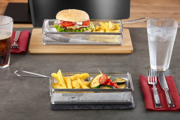 Kosz do frytownicy wykonany ze stali nierdzewnej chromoniklowej 18/10. Można myć w zmywarce.