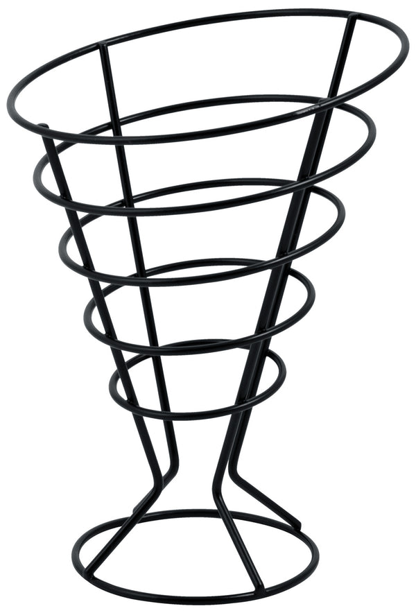 Stojak na frytki wykonany z metalu malowanego proszkowo. Spiralna konstrukcja rozszerzająca się ku górze. Nie nadaje się do zmywarek.