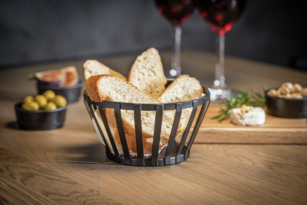 Kosz na pieczywo wykonany ze stali malowanej proszkowo. Nie nadaje się do zmywarek.