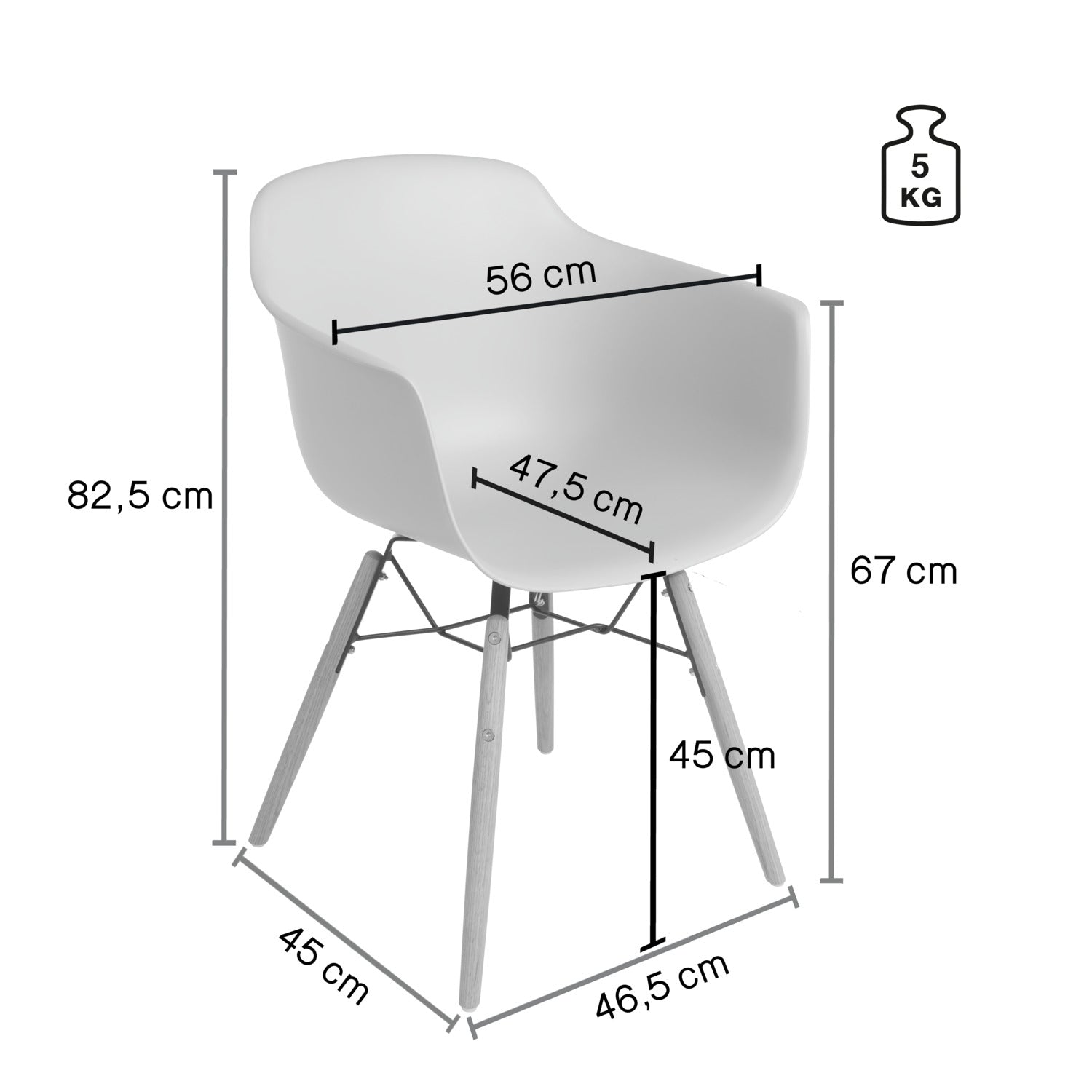 Krzesło Emeo z podłokietnikami o nowoczesnym designie. Rama krzesła wykonana z połączenia drewna i stali. Siedzisko wykonane z tworzywa sztucznego. Zawiera przyjazne dla podłogi plastikowe ślizgacze. Wytrzymałe i łatwe do czyszczenia. Nadaje się wyłącznie do użytku wewnątrz pomieszczeń. Zestaw składa się z dwóch krzeseł. Prosty montaż, rama krzesła jest przymocowana do siedziska za pomocą dostarczonego materiału montażowego.