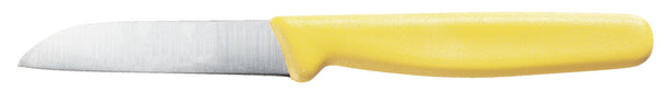 Niezwykle ostry profesjonalny nóż kuchenny z ostrzami wykonanymi z odpornej na korozję stali chromowo-molibdenowo-wanadowej ze stopu X50CrMoV15. Gwarancja długotrwałej ostrości. Ergonomicznie ukształtowane rękojeści z dobrym wyważeniem między rękojeścią a ostrzem zapewniają wygodną obsługę. Długość ostrza 9 cm. Wybór kolorów do użytku zgodnie z koncepcją HACCP.