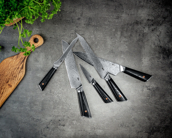Wysokiej jakości nóż z niezwykle ostrym ostrzem wykonanym ze stali damasceńskiej składającej się z 67 warstw. Idealne ostrze o kącie 15°, dwustronne. Ergonomiczna rękojeść wykonana z materiału G10. Bardzo twarde ostrze o długości 20 cm z wysoką trwałością krawędzi.