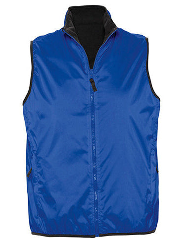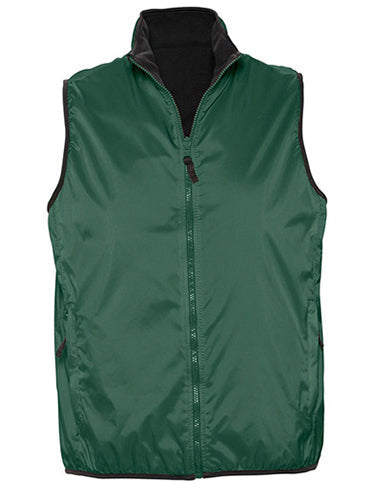 Dwukolorowa kamizelka chroniąca przed deszczem i wiatrem, idealna jako warstwa docieplająca. Kamizelkę wykonano z dwóch materiałów - po jednej stronie z błyszczącej tkaniny, a po drugiej stronie - z ciepłego polaru. Wysoka stójka chroni przed powiewami wiatru, a dwie kieszenie oferują miejsce na akcesoria. Zamek główny w kontrastującym kolorze ułatwia szybką zmianę garderoby. Dół kamizelki i otwory rękawowe wykończono lamówką w kolorze polaru. W takiej kamizelce można swobodnie wykonywać obowiązki mimo niesprzyjających warunków pogodowych. Kamizelka nie krępuje ruchów i przyda się pracownikom technicznym, ogrodnikom, serwisom sprzątającym czy obsłudze gastronomii.