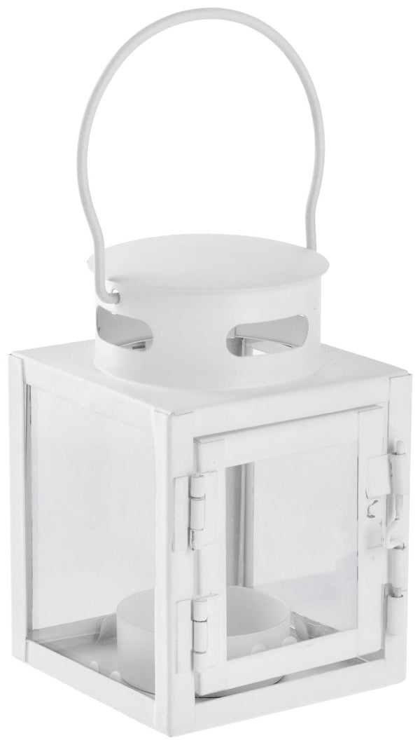 Mini lampion o klasycznym designie wykonany z metalu i szkła.