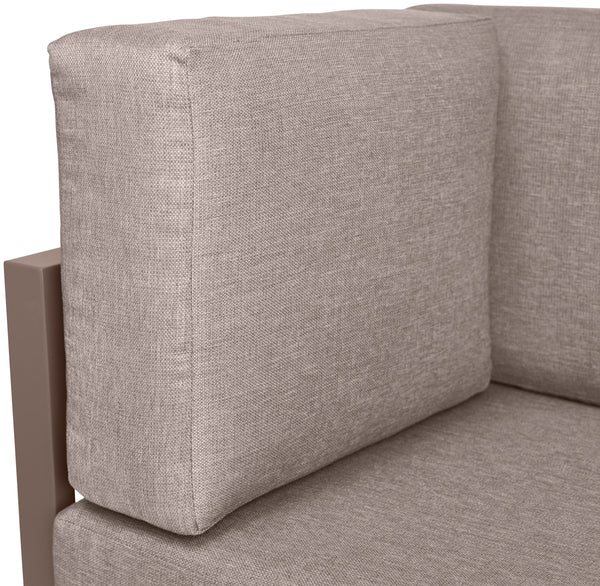 Narożnik pasujący do serii Sereno. Rama z malowanego proszkowo aluminium, siedzisko i oparcie z tkaniny olefinowej (100% polipropylen). Odporny na światło i warunki atmosferyczne. Łatwe łączenie poszczególnych elementów za pomocą dołączonych łączników.