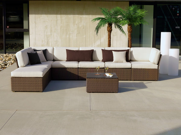 Element podstawowy Combine to podstawa innowacyjnej formy mebli ogrodowych. Element ten jest częścią serii mebli wypoczynkowych Combine i stanowi pierwszy krok w kierunku stworzenia przytulnego salonu na tarasie dla gości. Prosto zaprojektowana plastikowa wiklina jest wykonana z materiału odpornego na warunki atmosferyczne, przymocowana do solidnej aluminiowej ramy i pozostaje piękna przez długi czas bez blaknięcia dzięki odporności na promieniowanie UV. Dzięki prostemu systemowi można łączyć element do siedzenia z oparciami, innymi elementami podstawowymi i bocznymi z serii, aby tworzyć przestronne salony do siedzenia. * Prostokątna podstawa do mebli wypoczynkowych do całorocznego użytku na zewnątrz. * Na solidnej aluminiowej ramie z odporną na warunki atmosferyczne i szybkoschnącą markową wikliną z tworzywa sztucznego * Możliwość łączenia z innymi elementami z serii Combine, pasujące łączniki rzędowe należy zamawiać osobno * Możliwość zamówienia poduszki na siedzisko i innych elementów * Odporny na promieniowanie UV, łatwy w pielęgnacji i trwały * Ślizgacze wykonane z wytrzymałego tworzywa sztucznego * Panele wykonane z wysokiej jakości szczotkowanej stali nierdzewnej 304 * Blat stołu dostępny do użytku jako stół wypoczynkowy Nadaj swojej przestrzeni zewnętrznej jeszcze więcej przyjemnej atmosfery dzięki podstawowemu elementowi Combine! Innowacyjnie zaprojektowana część wypoczynkowa sprawi, że goście nie będą mogli się oprzeć i z przyjemnością wypiją kolejny koktajl. Wygodny element do siedzenia naprawdę wyróżnia się w połączeniu z innymi elementami z serii Combine i można go połączyć, aby w mgnieniu oka stworzyć rozległy, wygodny salon wypoczynkowy. W połączeniu z blatem można nawet wyczarować niski stolik.