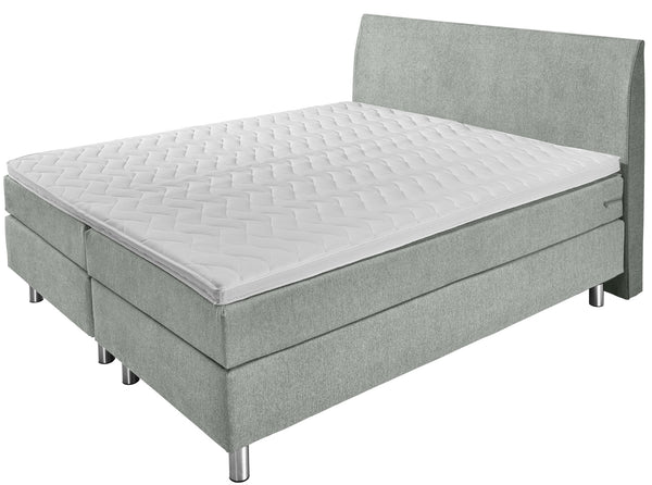 Łóżko z materacem sprężynowym w praktycznym komplecie. Skrzynia z rdzeniem ze sprężyn bonellowych. Sprężyny bonellowe o grubości 2,2 mm. Tapicerowana rama z litego drewna. 7-strefowy materac kieszeniowy z 540 sprężynami na 2 m². Nakładka z zimnej pianki zapewniająca komfort snu. Klasyczne, proste wezgłowie - wysokość 110 cm. Odporne na rdzę metalowe nóżki w kolorze srebrnym. Wysokość wejścia: 60 cm. Wysokość nóżek 16 cm + skrzynia 22 cm + materac 17 cm + topper 5 cm łącznie: 60 cm. Z pokrowcem z tkaniny tapicerskiej. Dostępne jako łóżko pojedyncze lub podwójne. Dostawa wraz z elementami łączącymi. Nóżki łóżka można znaleźć w pudełku przy dostawie.