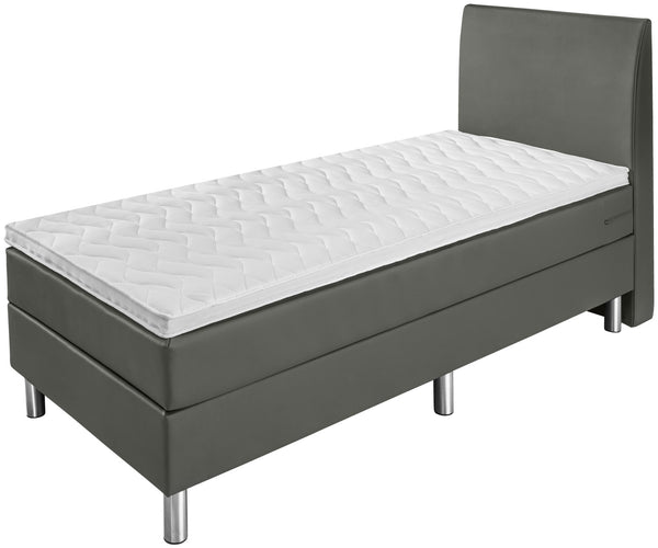 Łóżko z materacem sprężynowym w praktycznym komplecie. Skrzynia z rdzeniem ze sprężyn bonellowych. Sprężyny bonellowe o grubości 2,2 mm. Tapicerowana rama z litego drewna. 7-strefowy materac kieszeniowy z 540 sprężynami na 2 m². Nakładka z zimnej pianki zapewniająca komfort snu. Klasyczne, proste wezgłowie - wysokość 110 cm. Odporne na rdzę metalowe nóżki w kolorze srebrnym. Wysokość wejścia: 60 cm. Wysokość nóżek 16 cm + skrzynia 22 cm + materac 17 cm + topper 5 cm łącznie: 60 cm. Z pokrowcem z imitacji skóry. Dostępne jako łóżko pojedyncze lub podwójne. Dostawa wraz z elementami łączącymi. Nóżki łóżka można znaleźć w pudełku przy dostawie.