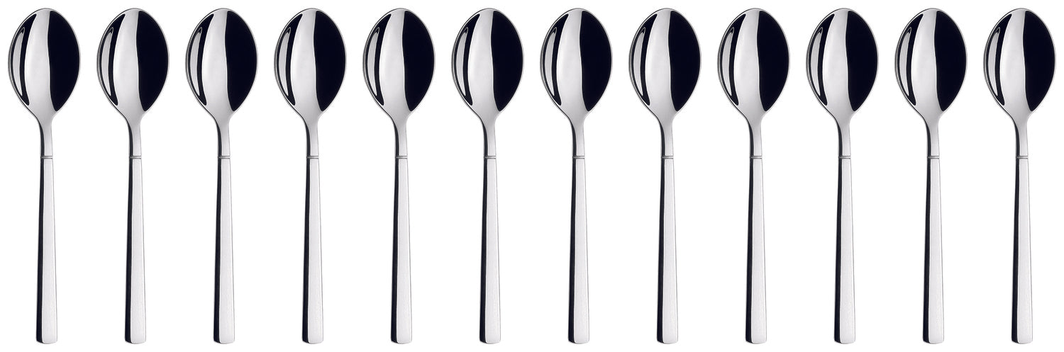 Stal nierdzewna chromoniklowa 18/10. Łyżeczka do espresso o prostym designie. Wypolerowana na wysoki połysk. Grubość materiału 2,5 mm odpowiednia dla gastronomii (mierzona w najmocniejszym miejscu widelca obiadowego). Można myć w zmywarce.