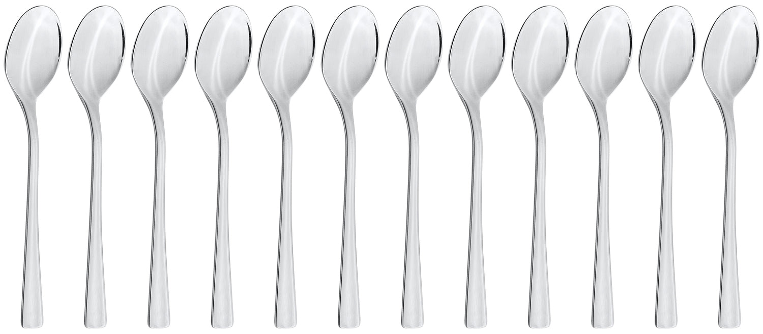 Elegancka łyżeczka do mokki/espresso. Polerowana na lustro. Grubość materiału 2,5 mm (mierzona w najgrubszym punkcie widelca). Można myć w zmywarce. Stal nierdzewna 18/0.