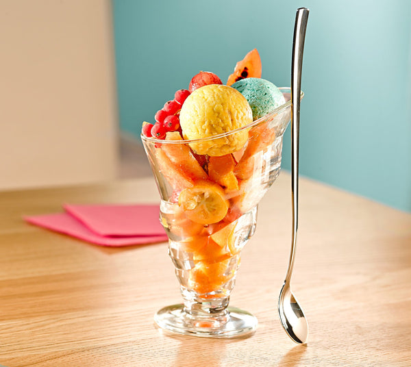 Stal nierdzewna chromoniklowa 18/10. Łyżeczka do lodów/long drinków o prostym, neutralnym designie. Wypolerowana na wysoki połysk. Grubość materiału 3 mm odpowiednia dla gastronomii (mierzona w najmocniejszym miejscu widelca obiadowego). Można myć w zmywarce.