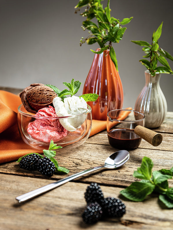 Chromoniklowa stal nierdzewna 18/10, odporna na rdzę. Łyżka do lodów/długich napojów w prostym kształcie. Polerowana na wysoki połysk. Grubość materiału adekwatna dla gastronomii 4 mm (mierzona w najmocniejszym punkcie widelca obiadowego). Możliwość mycia w zmywarce.