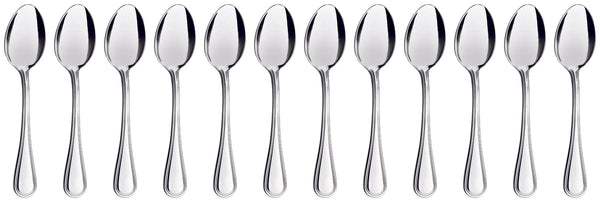 Stal nierdzewna chromoniklowa 18/10. Klasyczna łyżka do przystawek/deserów. Wypolerowana na wysoki połysk. Grubość materiału 3 mm odpowiednia dla gastronomii (mierzona w najmocniejszym miejscu widelca obiadowego). Można myć w zmywarce.