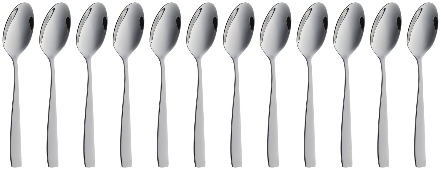 Nowoczesna łyżeczka do kawy/herbaty o minimalistyczym designie. Polerowana na wysoki połysk. Grubość materiału 2,5 mm (mierzona w najgrubszym punkcie widelca). Można myć w zmywarce. Stal nierdzewna 18/0.