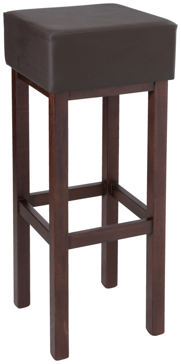 Tapicerowany stołek barowy wykonany z litego, lakierowanego drewna bukowego. Siedzisko 35x35 cm. Tapicerka 15 cm. Nadaje się do użytku wewnątrz pomieszczeń. Dostarczany zmontowany.
