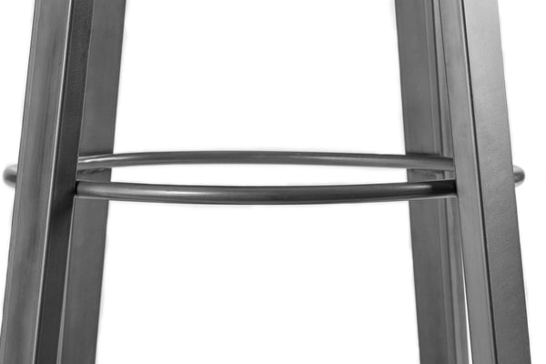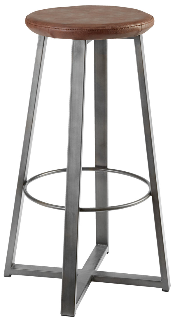 Stołek barowy z tapicerowanym siedziskiem (imitacja skóry) wykonany z malowanej proszkowo stalowej ramy w wykończeniu vintage. Zawiera plastikowe ślizgacze na spodzie. Wytrzymały i łatwy do czyszczenia. Ognioodporny. Nadaje się tylko do użytku wewnątrz pomieszczeń. Dostarczany w stanie zmontowanym.