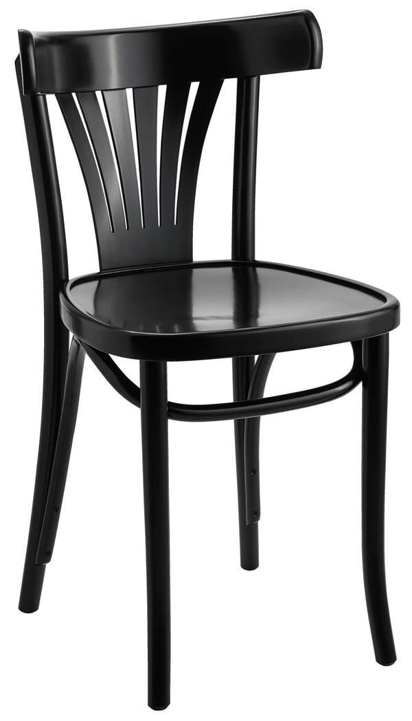 Krzesło gięte bez podłokietników wykonane z litego drewna bukowego, bejcowane i lakierowane. Wysoki komfort siedzenia. Łatwe do czyszczenia. Nadaje się wyłącznie do użytku wewnątrz pomieszczeń. Dostarczane w stanie zmontowanym. Możliwość zamówienia pasujących poduszek na siedziska.