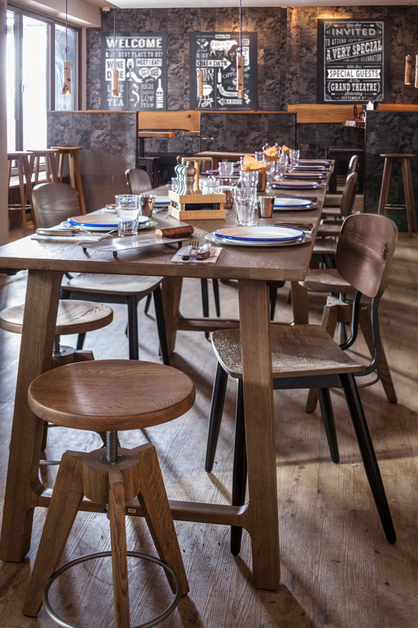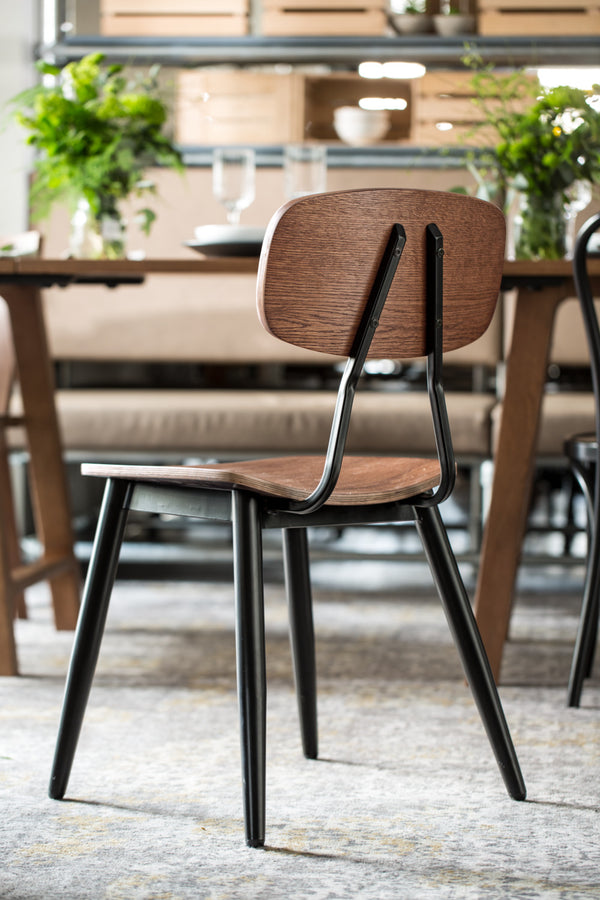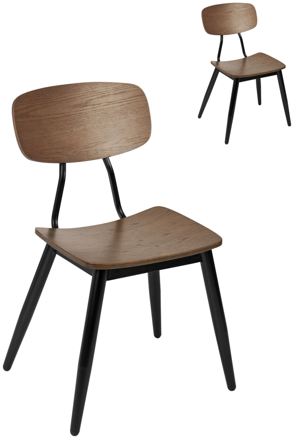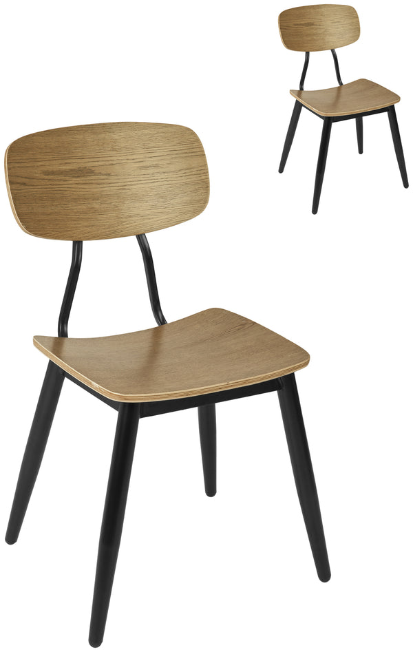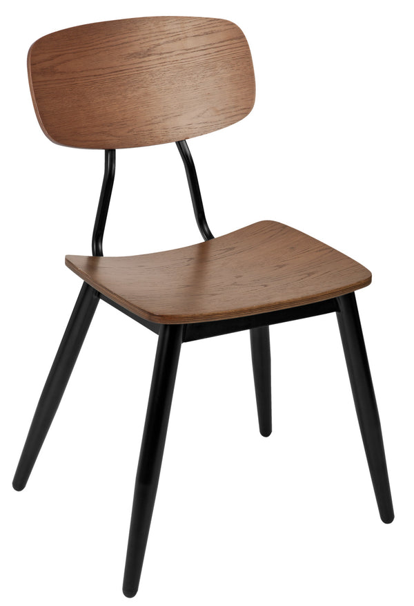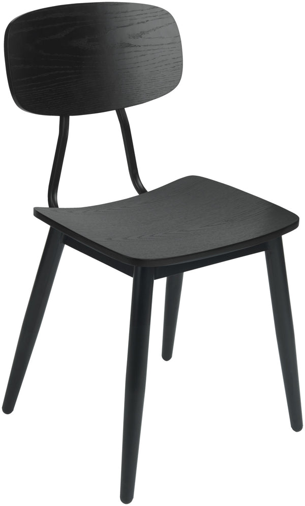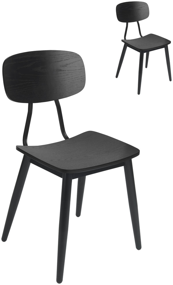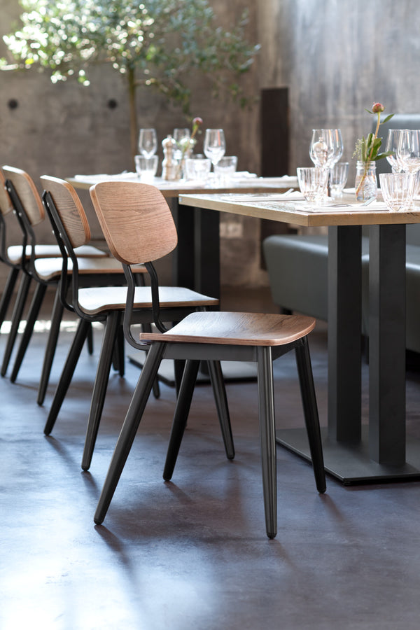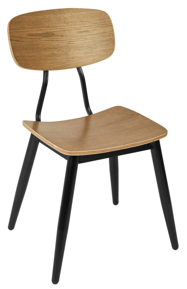 Nowoczesne krzesło wykonane z lakierowanej na czarno stali, siedzisko i oparcie ze sklejki jesionowej o uroku vintage. Wysoki komfort siedzenia. Łatwe do czyszczenia. Nadaje się wyłącznie do użytku wewnątrz pomieszczeń. Dostarczane w stanie zmontowanym. Zamów pasujący stołek barowy w tym samym czasie.