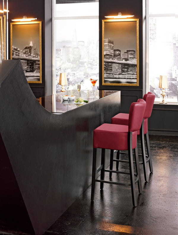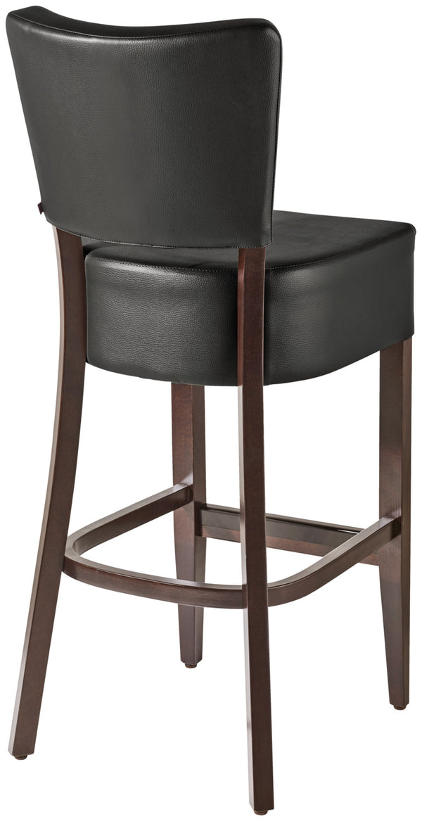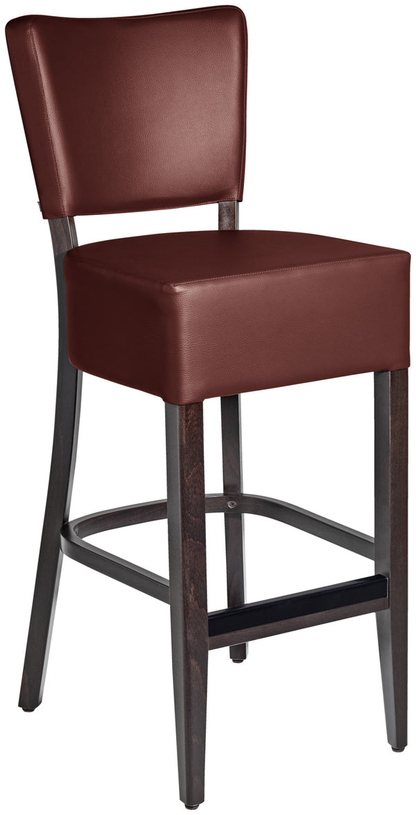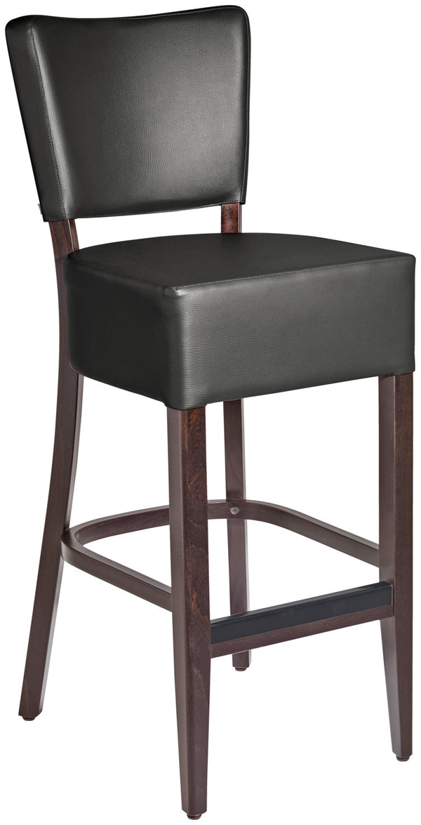 Klasyczne krzesło barowe wykonane z litego drewna bukowego i tapicerki z imitacji skóry. Tapicerowane siedzisko i miękkie oparcie zapewniają wysoki komfort siedzenia. Zintegrowane zabezpieczenie podnóżka wykonane ze stali malowanej proszkowo na kolor czarny. W komplecie plastikowe ślizgacze. Pokrycie ognioodporne. Nadaje się tylko do użytku wewnątrz pomieszczeń. Dostarczane w stanie zmontowanym. Zamów pasujące krzesło w tym samym czasie.