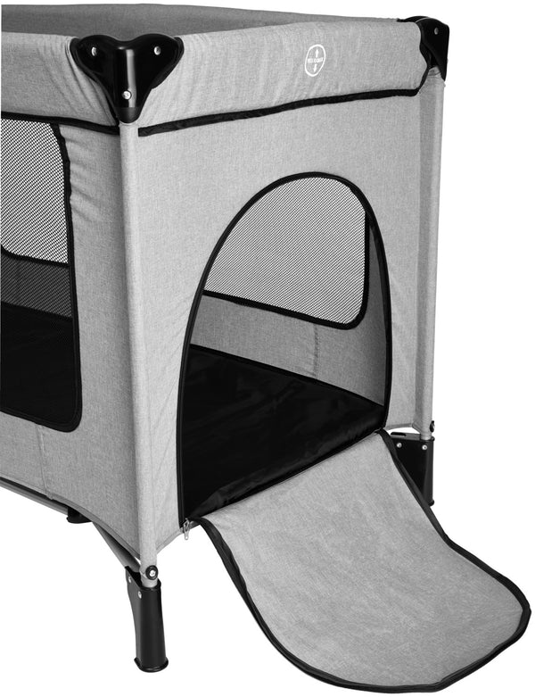 Składane plastikowe łóżeczko turystyczne z poliestrowym pokrowcem w kompaktowej torbie transportowej. Z dwoma kółkami i zintegrowanym otworem. Maksymalne obciążenie 15 kg. Możliwość zamówienia pasującego materaca.
