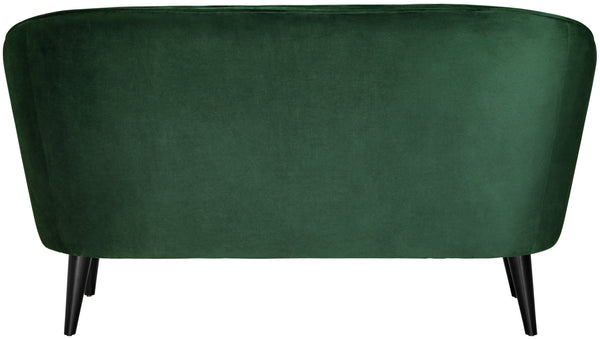 Elegancka 2-osobowa sofa z aksamitnym obiciem (100% poliester) i lakierowanymi na czarno nóżkami z drewna bukowego. Eleganckie pikowanie po wewnętrznej stronie urozmaica sofę. Odległość od podłogi wynosi 20 cm. Nadaje się wyłącznie do użytku w pomieszczeniach. Dostawa w stanie zdemontowanym, nogi należy przymocować za pomocą dołączonego materiału montażowego.