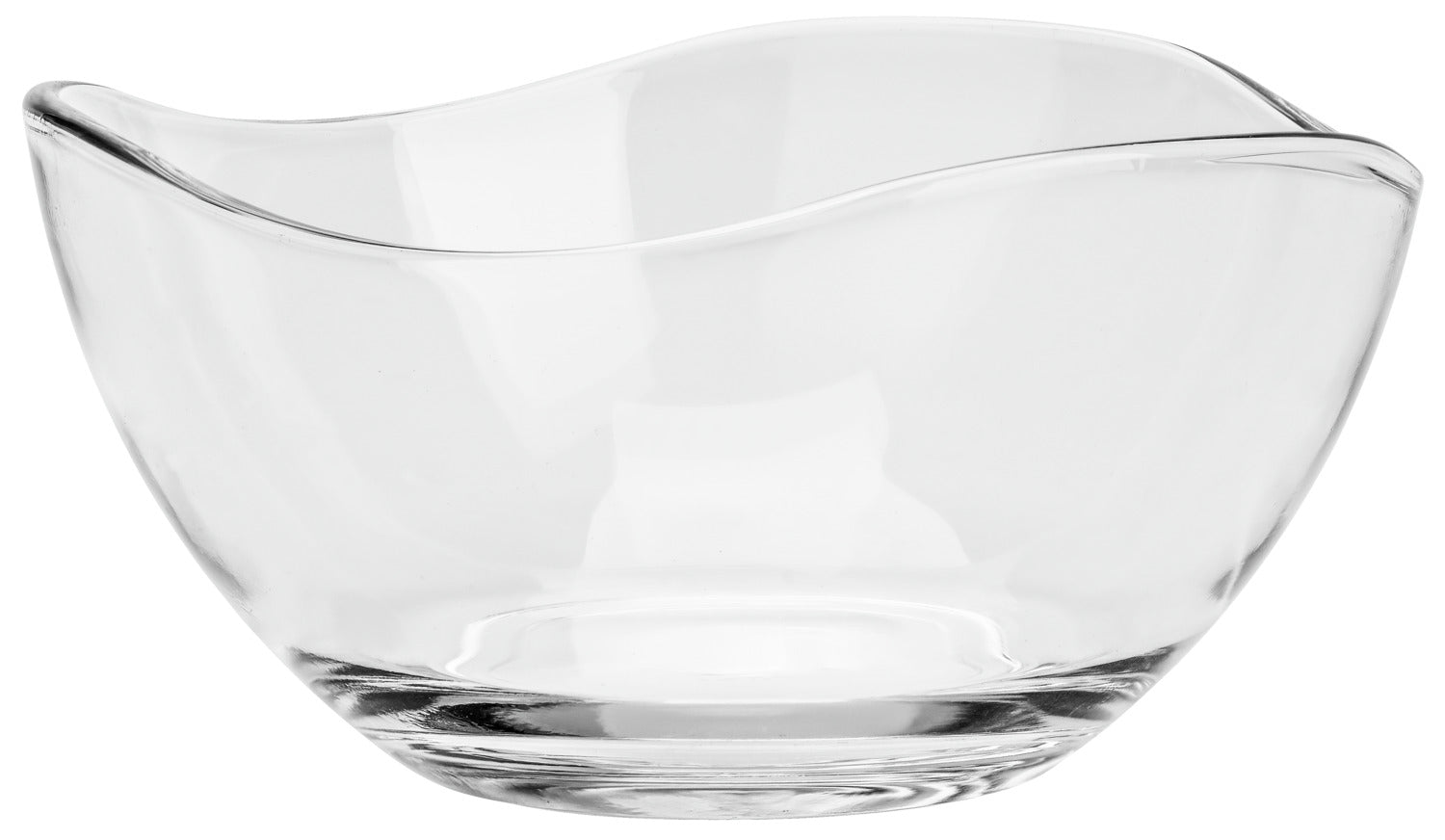 Szklana miska o nowoczesnym designie. Możliwość układania w stosy i mycia w zmywarce.