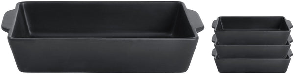 Kolorowe gliniane miski z uchwytami - prostokątny kształt, matowe szkliwo, różne rozmiary. Wymiary podane łącznie z uchwytami. Można myć w zmywarce i używać w kuchence mikrofalowej.