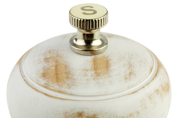 Młynek do soli wykonany z drewna bukowego wraz z młynkiem ze stali nierdzewnej.