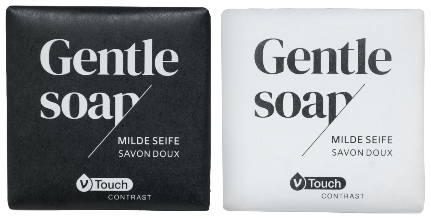 Pielęgnujące i delikatnie oczyszczające mydło V-Touch Contrast. Kwadratowa kostka mydła zachwyca łagodną pianą, delikatnym działaniem oczyszczającym i pozostawia skórę odżywioną i czystą. Mydło jest neutralne i dlatego idealne dla wszystkich gości. Testowane dermatologicznie. Mydło jest pakowane pojedynczo.