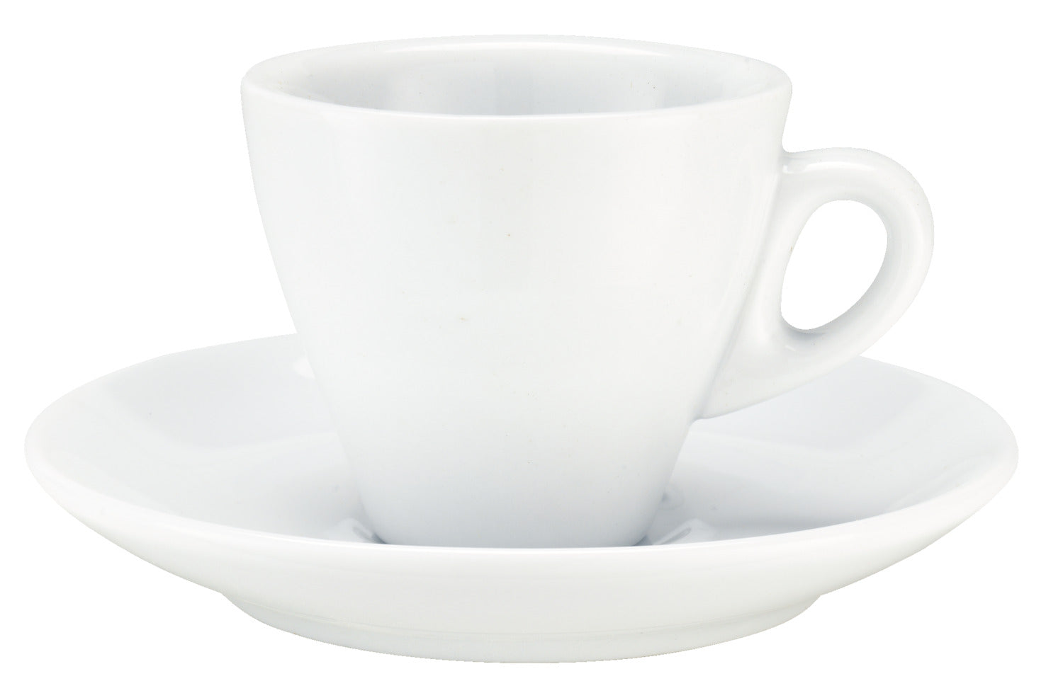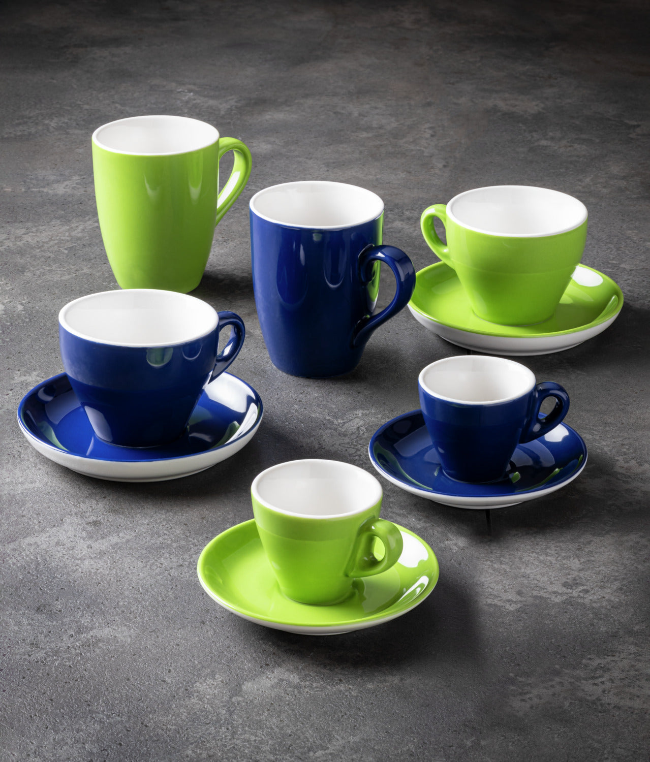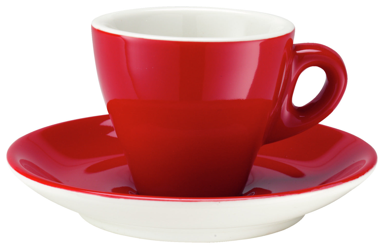 Spodek do espresso z kolorowej lub białej porcelany. Solidnie wykonany. Można myć w zmywarce i używać w kuchence mikrofalowej.