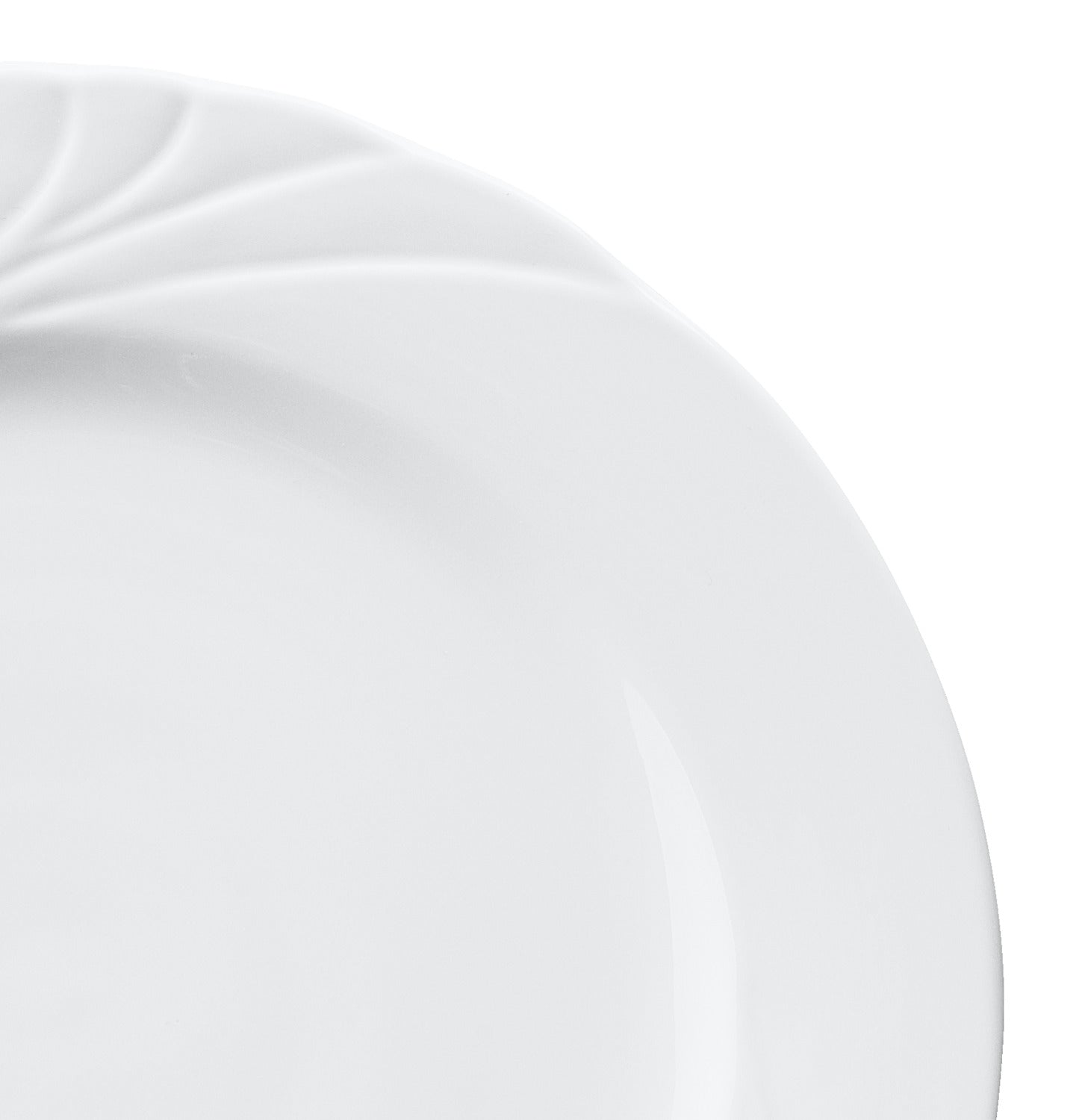 Spodek pod filiżankę do kawy wykonany z białej porcelany. Z prostym reliefem. Można myć w zmywarce i używać w kuchence mikrofalowej.